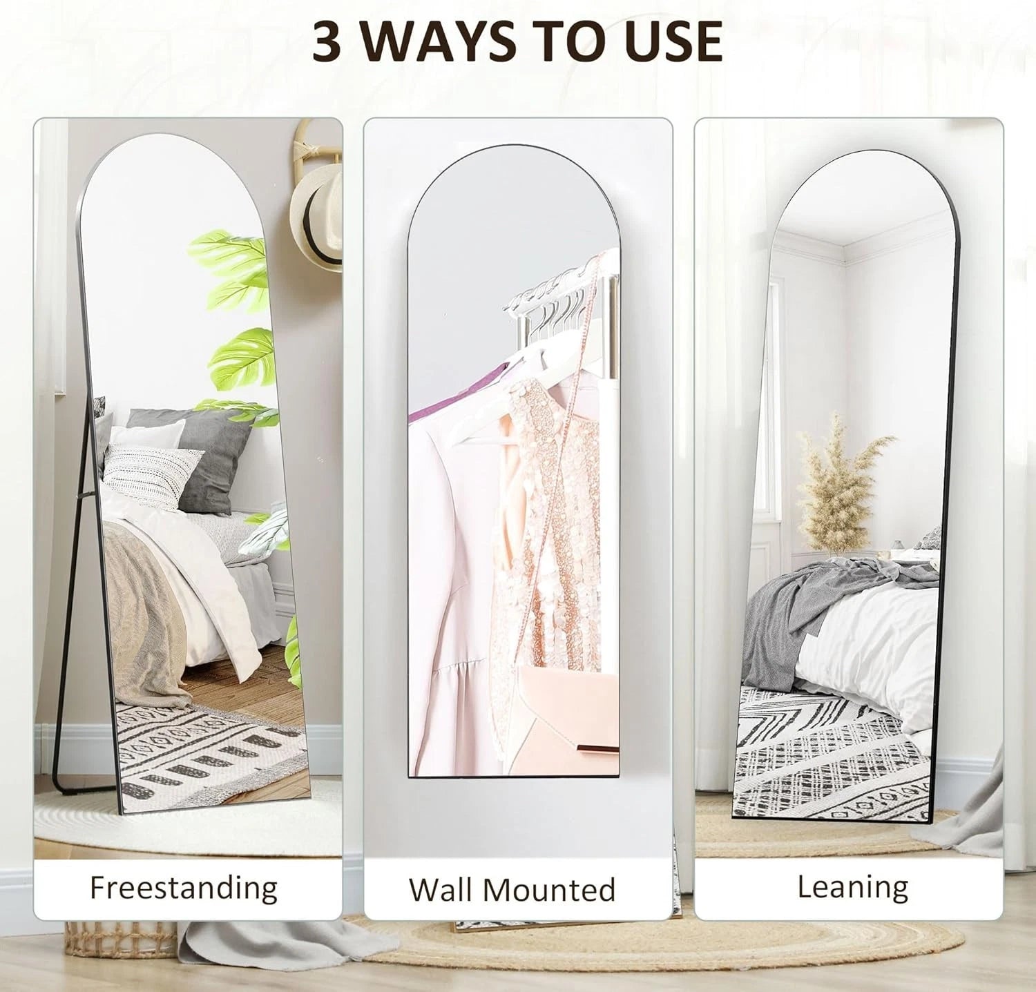 160x50cm Full Length Arch Mirror – Freestanding & Wall-Mounted